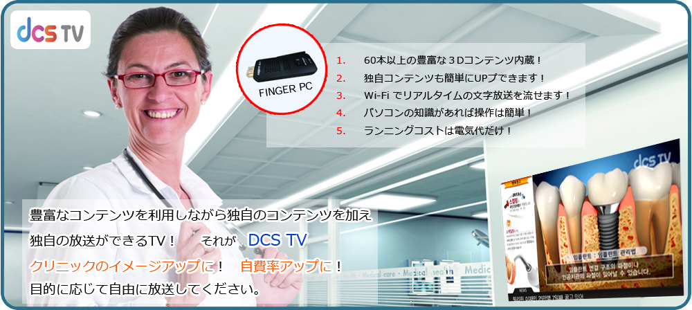 患者様の都合の良いときに 24 時間いつでも観覧できますので自比率拡大に最も効果的なツール。患者様が自然と興味を抱いてしまう解説と仕掛けを施すことができます。